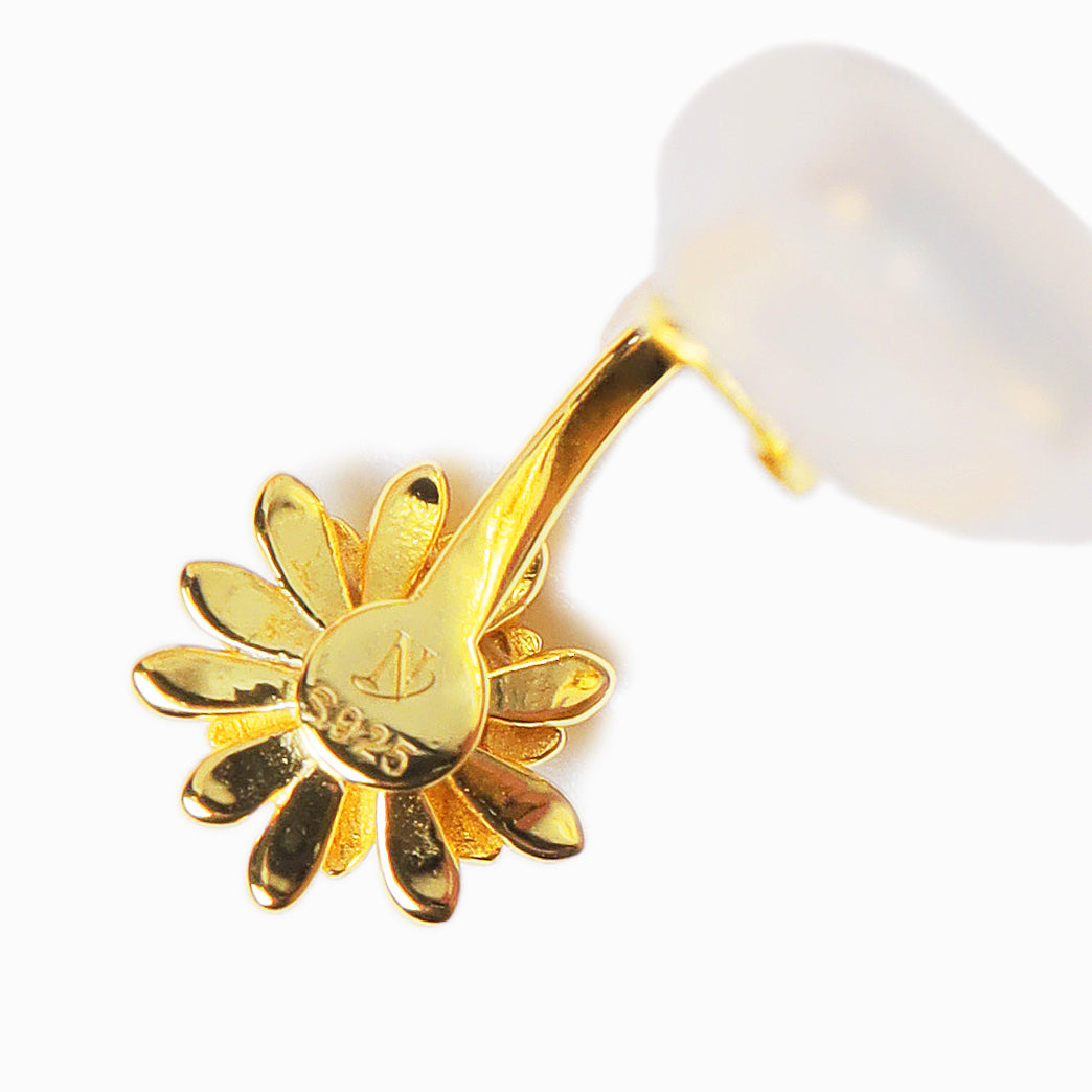 中央のブルーストーンがポイントのフラワーイヤークリップ。