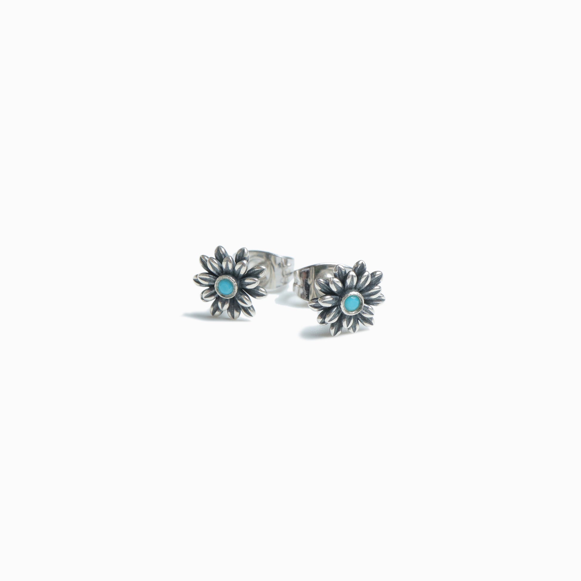 中央のブルーストーンがポイントのフラワーピアス。